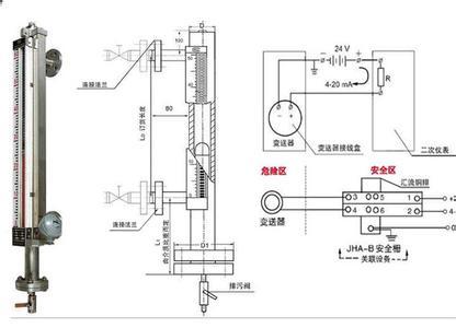 用戶可根據工程需要,配合遠傳變送器使用,可實現就地數字顯示,以及輸出4~20mA的標準遠傳電信號,以配合記錄儀表,或工業過程控制的需要。防腐型磁翻板液位計遠傳裝置如何與數顯儀表接線